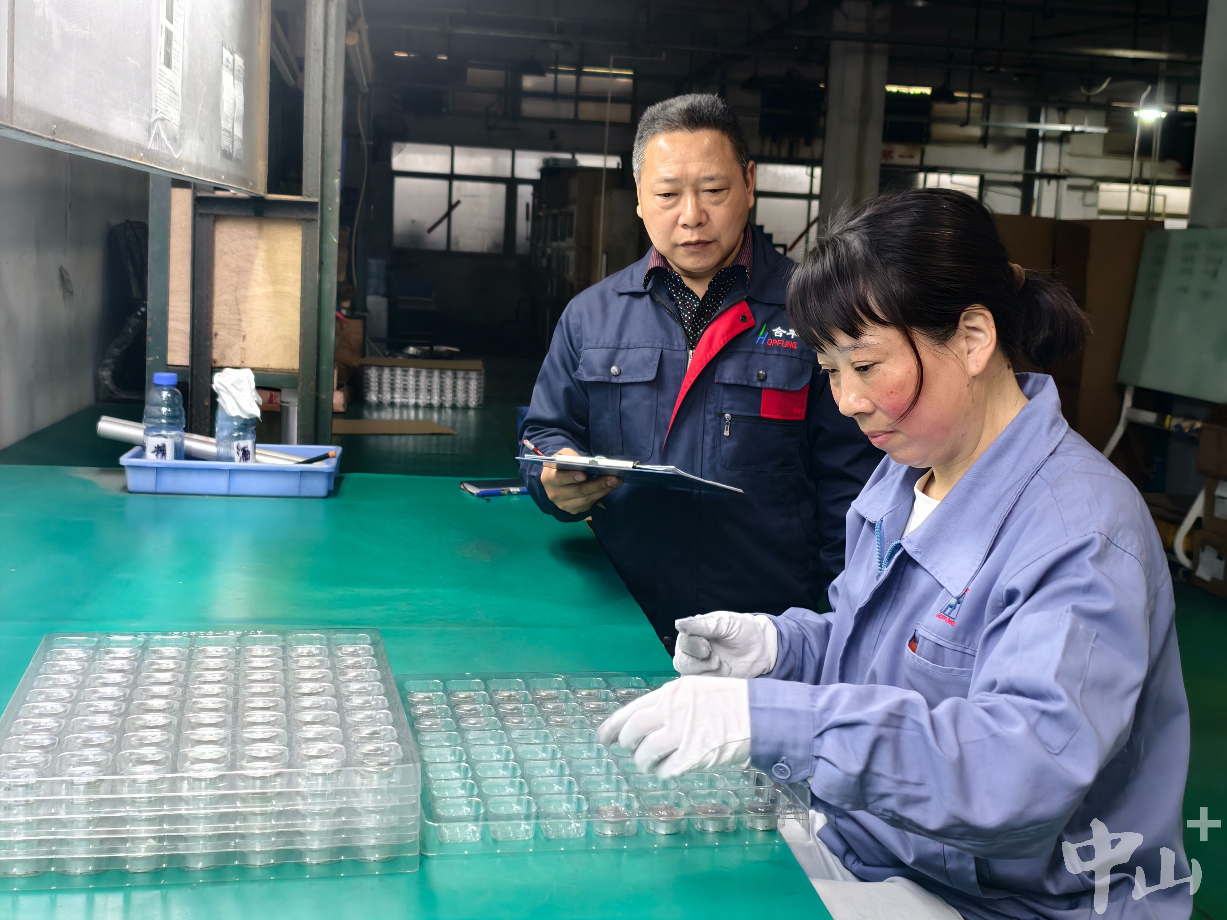 何虎在工廠車間檢查產品質量。記者 林燕英 攝