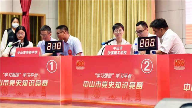 6月16日下午,“學(xué)習(xí)強國”學(xué)習(xí)平臺中山市黨史知識競賽教育工委專場半決賽在市委黨校舉行,中山市華僑中學(xué)、中山市石岐中心小學(xué)、中山市紀念中學(xué)、中山市沙溪理工學(xué)校等10支代表隊進行激烈的比拼,爭奪2個進入決賽的名額。經(jīng)過兩場激烈競爭,中山市華僑中學(xué)、中山市石岐中心小學(xué)晉級決賽,下一階段將與市直機關(guān)、國資系統(tǒng)、鎮(zhèn)街三個專場的晉級代表隊進行冠軍爭奪戰(zhàn)。